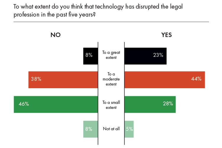 What was disappointing though, was to see that only 18% reported that their firms had offered to share or help implement new technology, while just 26% of respondents said that they looked to their law firms for inspiration or guidance around new legal technology.